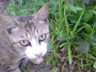 気になったので猫の前でしゃがんで舌を鳴らして呼んでみたら、案の定、近寄ってきました。